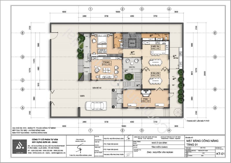 Căn biệt thự tọa lạc trên mảnh đất hướng Tây Nam, phù hợp với tuổi Nhâm Tý 1972 của gia chủ, đảm bảo các yếu tố phong thủy về khí vận và tài lộc. Kiến trúc sư Sơn Hà đã khéo léo vận dụng ngũ hành và bố cục để tạo nên một tổng thể hài hòa, vừa vững chắc vừa tinh tế.