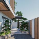 Hệ thống sân vườn, tiểu cảnh hoặc hồ bơi thường được kết hợp để tạo ra không gian thư giãn ngoài trời.