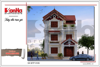 Mẫu 1: Biệt thự cổ điển mái ngói đỏ ấn tượng tại Hưng Yên – SH BTP 0115