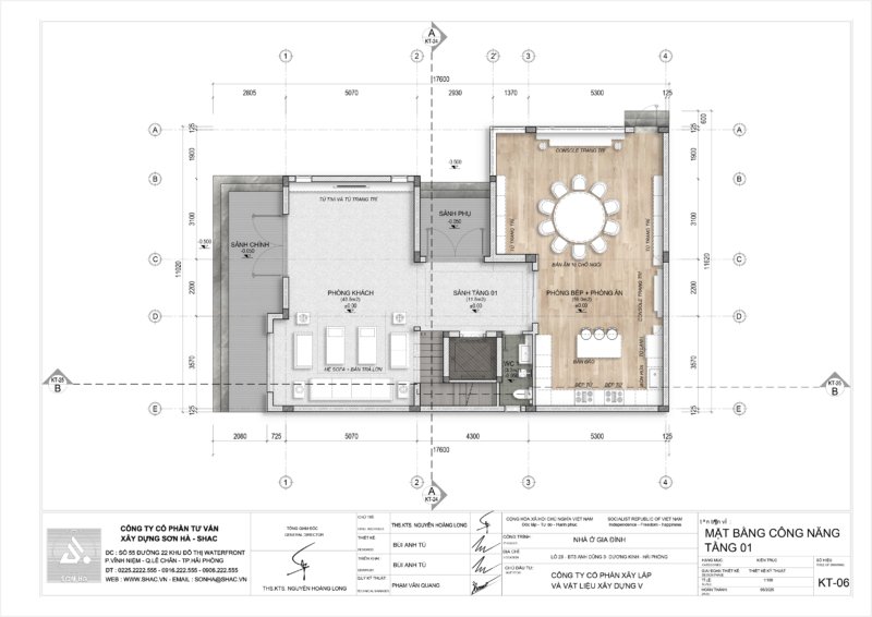 Tầng 1: Phòng khách, Phòng bếp ăn, Sảnh chính, Sảnh phụ, wc