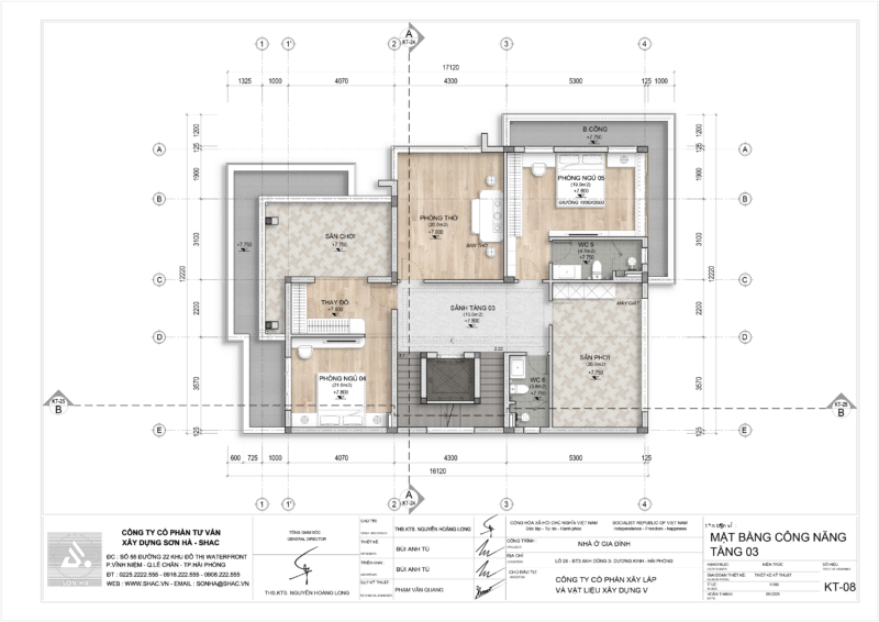 Tầng 3: 02 Phòng ngủ, 02 wc, Phòng thay đồ, Phòng thờ, Sân phơi, Sân chơi, Ban công