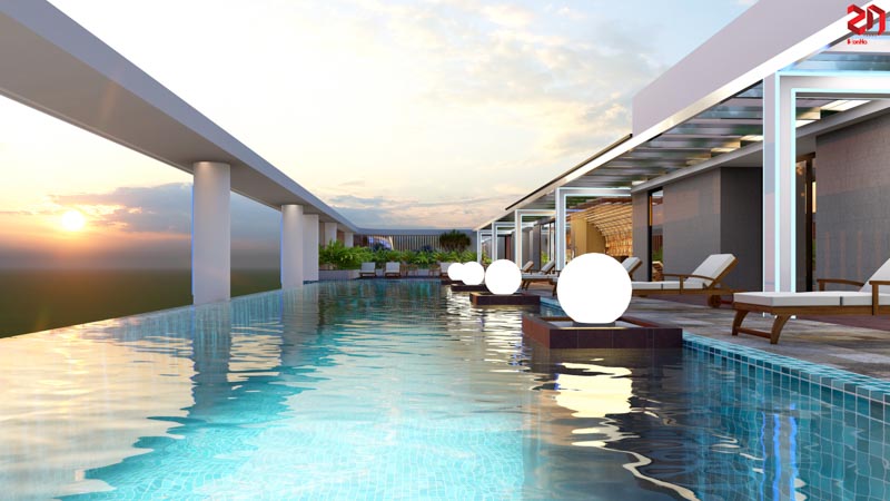 - Tầng 12: Sảnh tầng, Phòng gym, Phòng golf 3D, Khu giải khát, Bể bơi vô cực, bể bơi trẻ em, bể hồi, Khu vực phơi nắng.