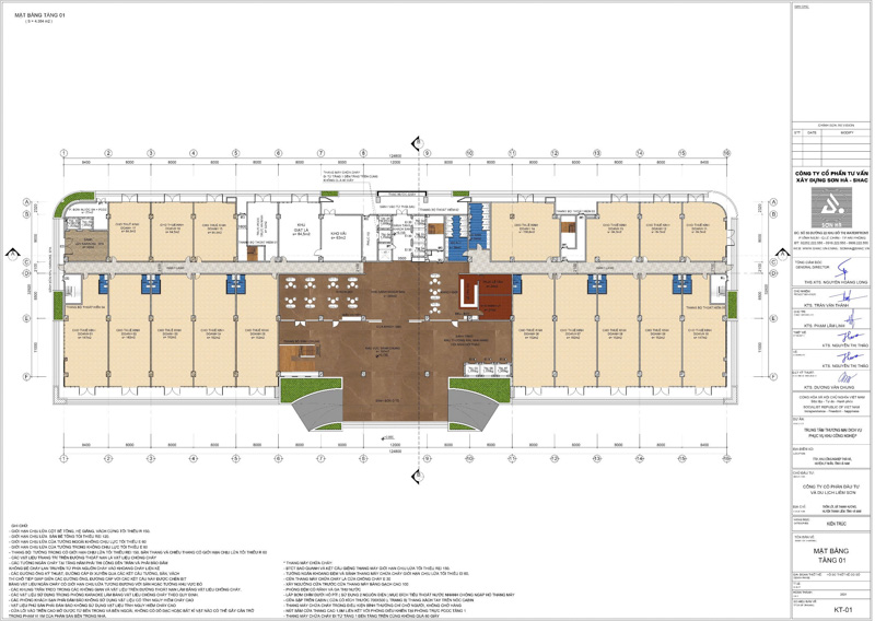 Tầng 1: Sảnh khách sạn, Sảnh chung, Sảnh lên Karaoke - Spa, Sảnh vào từ phía sau, Các văn phòng cho thuê, Khu giặt là, Kho vải, WC, Phòng bơm nước SH + PCCC