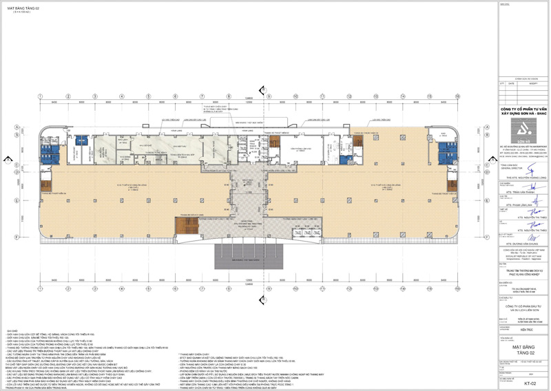 Tầng 2: Sảnh tầng, Khu vực cho thuê nhà hàng, Khu bếp, Bếp ăn nhân viên, Văn phòng làm việc, Phòng quản lý khách sạn, Kho, WC
