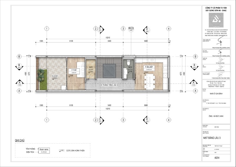 Tìm hiểu mẫu thiết kế nhà ống 3 tầng 4x15 hiện đại, 1 trệt + 3 lầu tại TP.HCM do Sơn Hà Group thực hiện. Không gian đẹp, công năng tối ưu, chuẩn gu gia chủ trẻ trung sinh năm 2004.