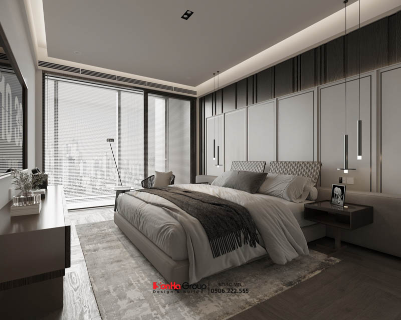 Tùy theo nhu cầu của gia chủ, các phòng ngủ phụ có thể được thiết kế theo phong cách hiện đại tối giản.