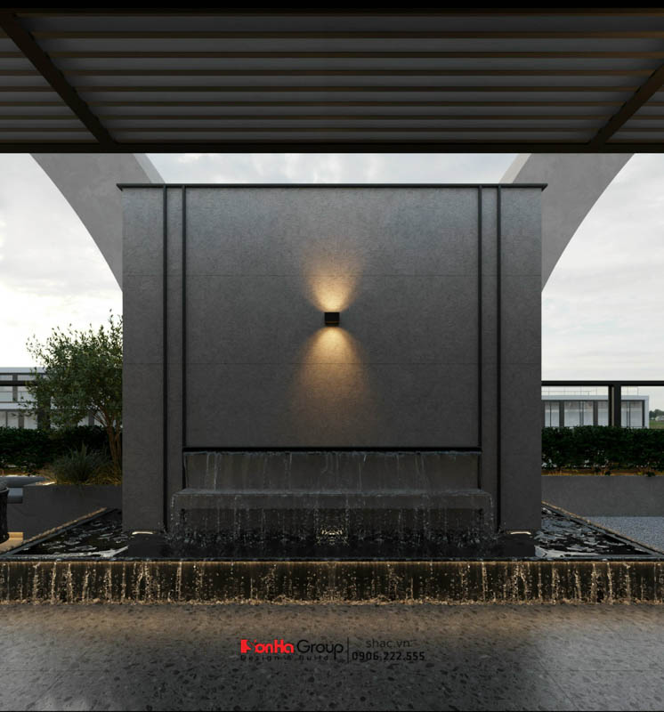 Đài phun nước mini, kết hợp với hệ thống tiểu cảnh giúp không gian luôn trong lành, mát mẻ.
