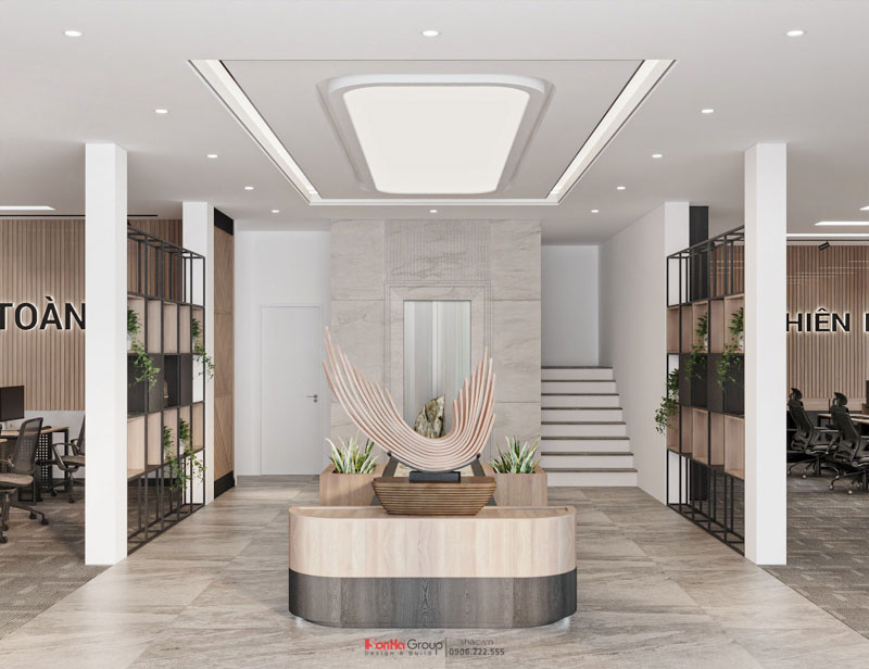 Tầng 1 được bố trí để phục vụ nhu cầu làm việc và tiếp đón khách hàng của công ty Thiên Lương, vậy nên các KTS của Sơn Hà đã sắp xếp:
